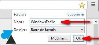- Le lien se place alors dans le dossier « Favorites Bar ». Libre à vous de lui donner un nom plus court avant de cliquer sur OK.