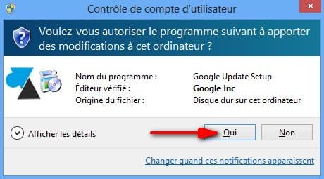 - Si Windows s’affiche avec une demande de contrôle de compte, confirmez en cliquant sur Oui.