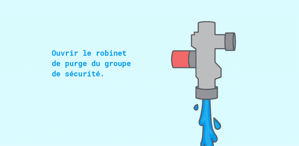 - Ouvrez la vanne de purge du groupe de sécurité.