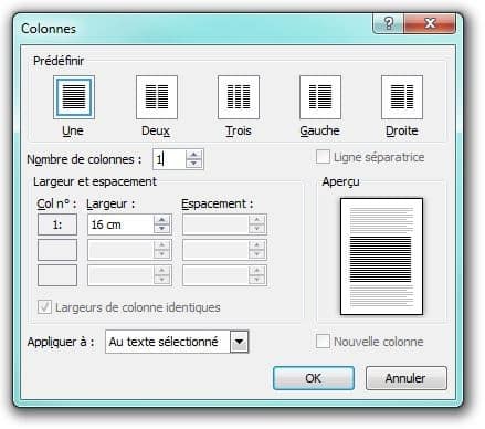 Microsoft Word vous permet d’écrire sur plusieurs colonnes. De cette façon, votre document ressemblera à un article imprimé. Pour ce faire, utilisez simplement le bouton Colonnes de l’onglet Mise en page. Différentes configurations sont possibles : 2 colonnes, 3 colonnes, 4 colonnes… Vous pouvez également créer des colonnes de différentes tailles, pour aller plus loin.