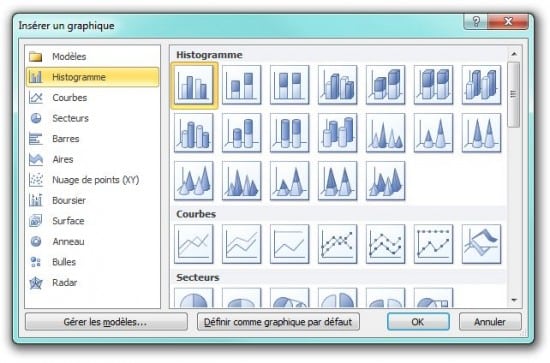 Créer un graphique : courbes, histogramme, barres…
