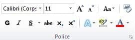 Pour mettre en forme du texte dans Word, vous devez utiliser l’onglet Accueil du ruban. Le ruban est le nom donné à la barre horizontale en haut du logiciel. Il réunit toutes les possibilités offertes par Microsoft Word et prend la forme d’une bannière. Différents onglets sont disponibles : Fichier, Accueil, Insérer, Page Setup… Ces onglets sont ensuite découpés en sections : presse-papiers, police, paragraphe… La section Police du Ruban Home vous permet de modifier l’apparence du texte : police, taille du texte, gras, soulignement, italique, biffé, exposant, couleur de police, effet de texte, coloration des couleurs… Vous pouvez également supprimer la mise en forme à l’aide de l’icône Gomme située en haut à droite de la section.