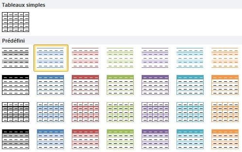 Insérez le tableau et utilisez la mise en forme par défaut