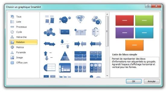Microsoft Word vous permet d’intégrer de nombreux schémas. Il s’agit de la fonction SmartArt, disponible sur le ruban, onglet Insérer. Vous pouvez personnaliser les couleurs, le texte, la forme… Nombreuxmodèles sont disponibles : liste, processus, boucle, hiérarchie, relation, matrice, pyramide, image… Une bonne façon d’illustrer vos papiers.